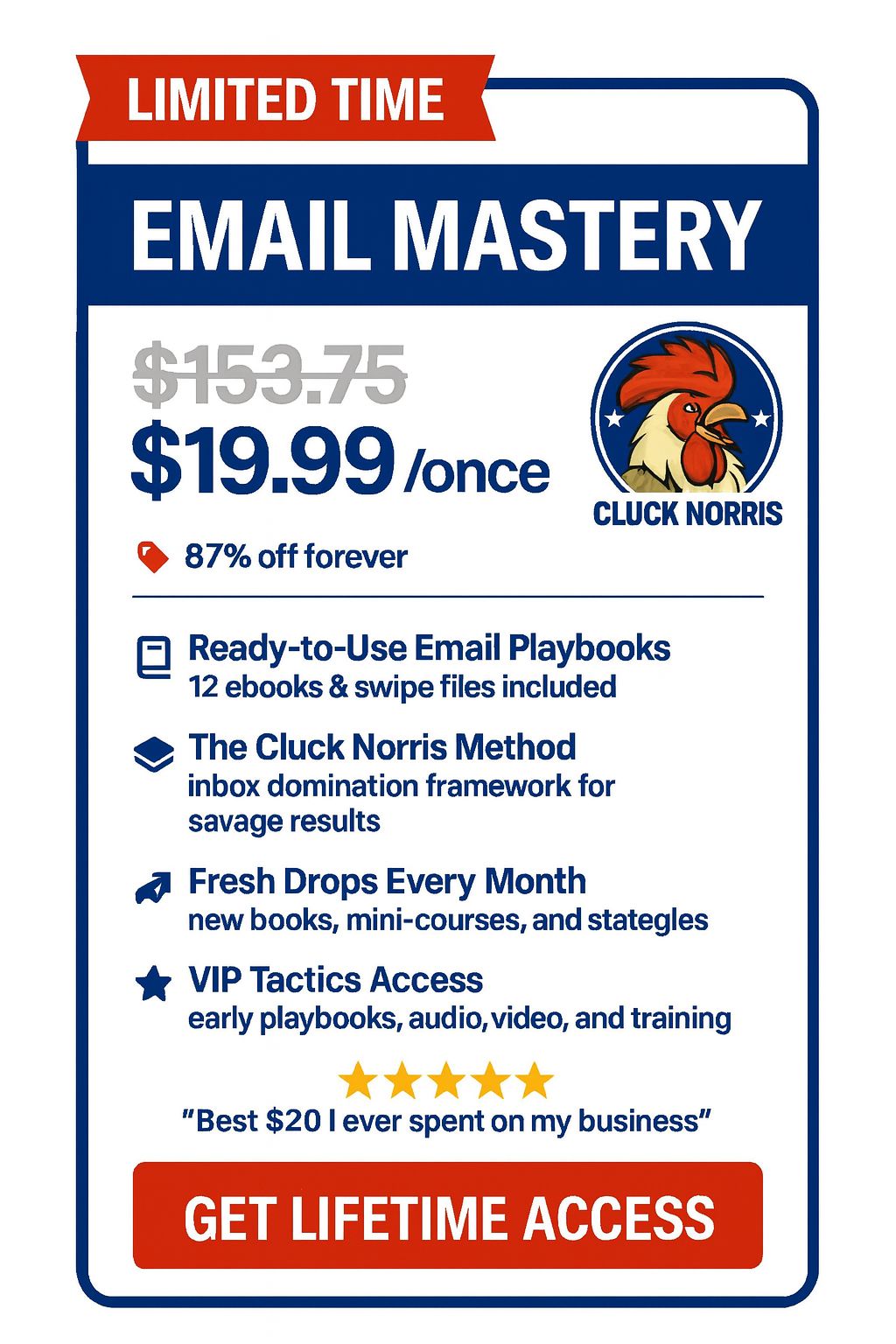 Forget gimmicks. Forget hacks. If you’re ready to stop winging it and start converting, it’s time to meet The Cluck Norris Method—the unapologetic playbook for turning email into your highest-performing sales channel.